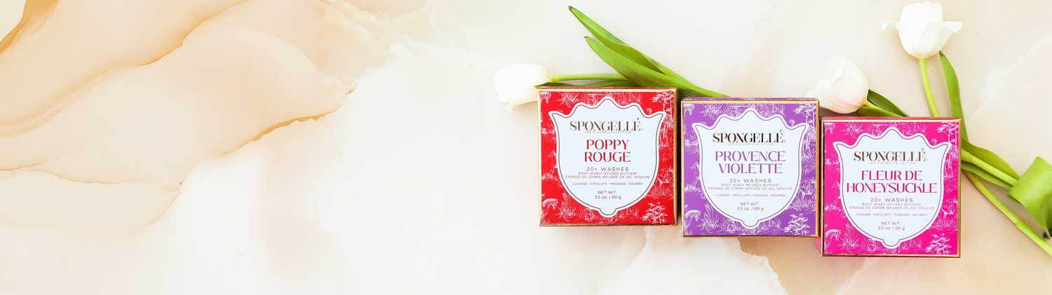 A captivating collection of Body Wash Infused Buffers® reminiscent of a blooming French garden to enhance your daily cleansing ritual with romance and charm.